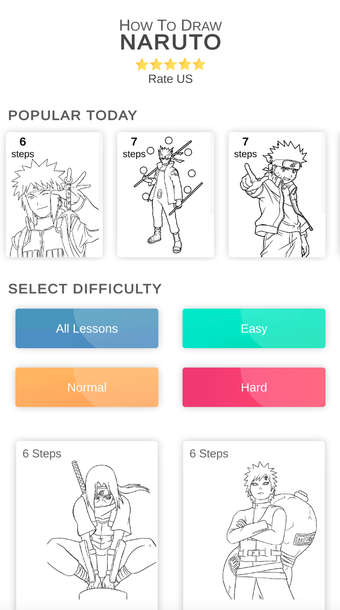 描画の学習は非常に簡単です。このアプリでは、初心者向けのレッスンだけでなく、上級者向けのレッスンも見つけることができます。初心者向けのレッスンでは、一つのキャラクターの描き方を学ぶことができます。